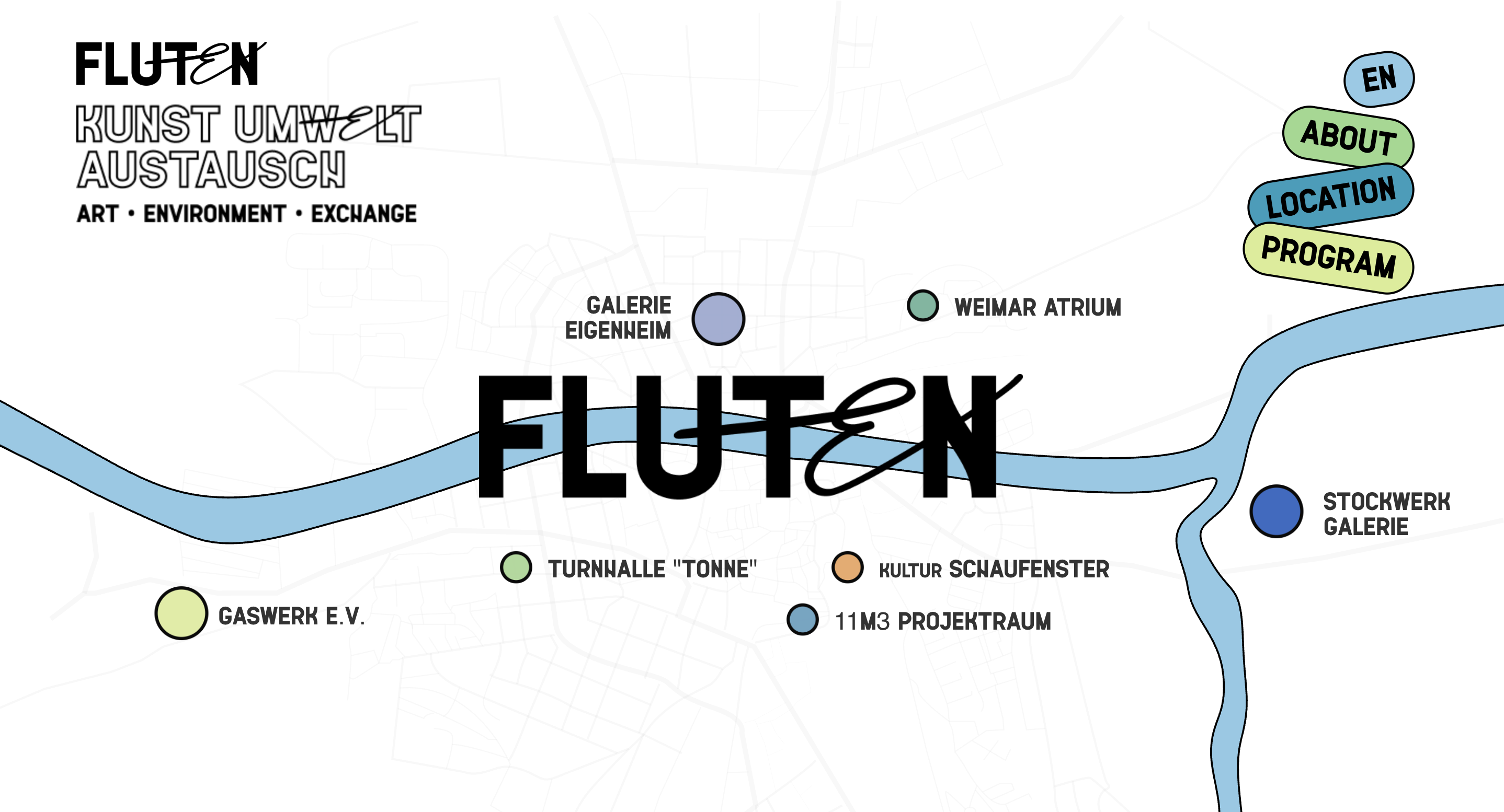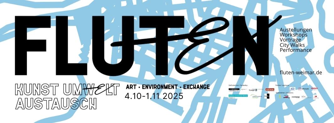 Im Oktober 2025 wird dieser Zusammenhang in Weimar sichtbar: Der Asbach-Kanal wird zum Überflutungsschutz neu gestaltet – Ausgangspunkt für FLUTEN, ein spartenübergreifendes Kulturprojekt, das Kunst, Geschichte und Gegenwart verbindet. Im Zentrum steht eine dreiteilige Ausstellung: Vor der Flut – Flow, in Trance im Gaswerk Weimar, In der Flut – Water, Waste, and Weakness bei Galerie Eigenheim Weimar und Nach der Flut – Permeable Learnscape im stockwerk auf dem E-Werk-Gelände.