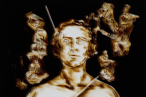 Existenz und Sinn. Dabei kommt Hinterglasmalerei mit Bitumen genauso zum