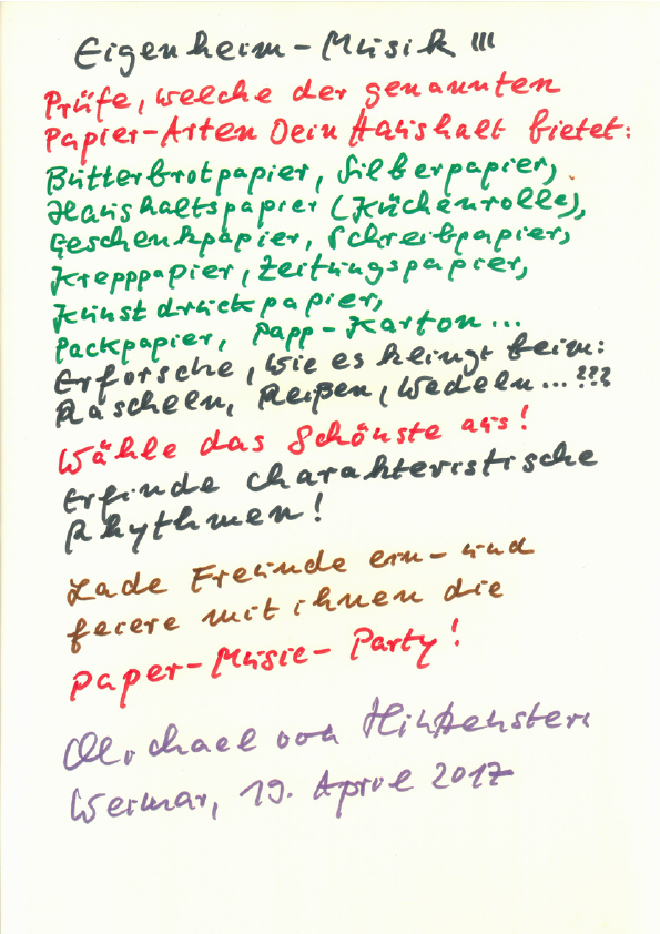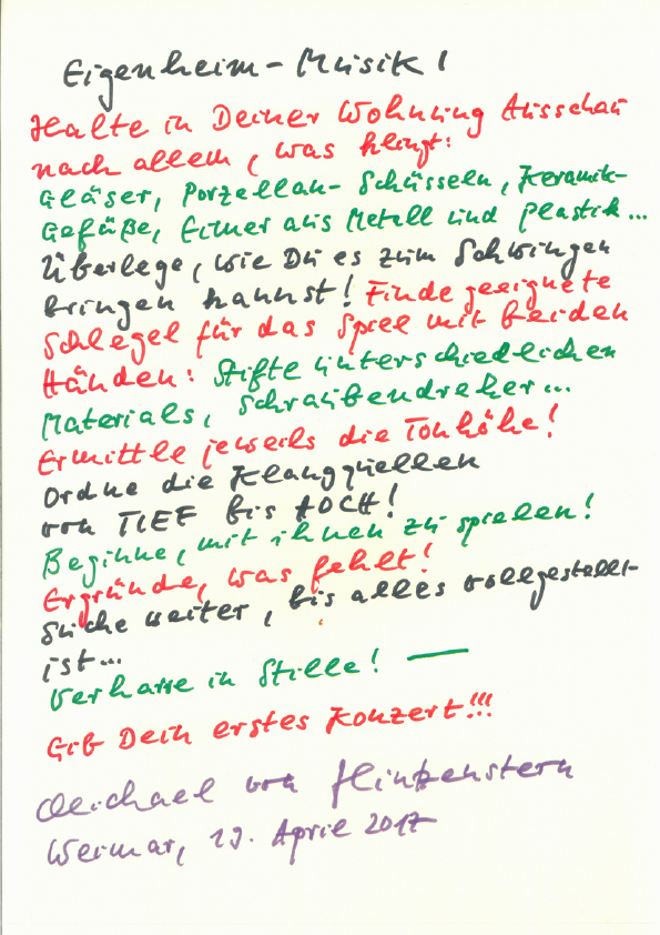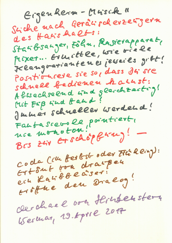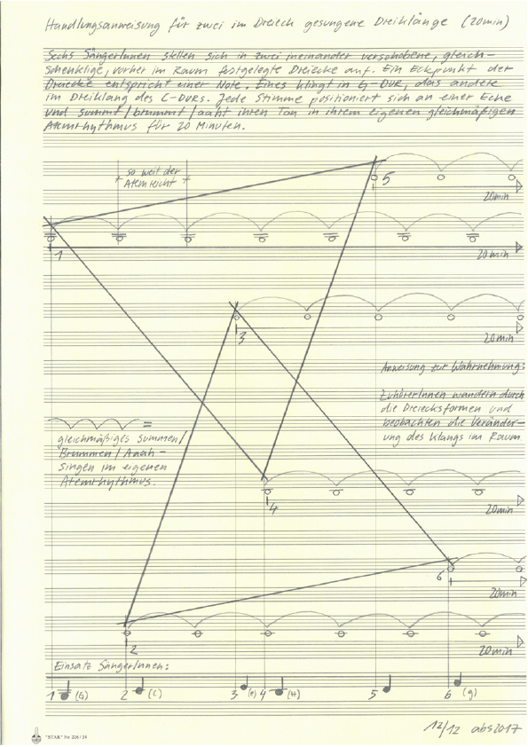 handlungsanweisung für zwei im dreieck gesungene dreiklänge -