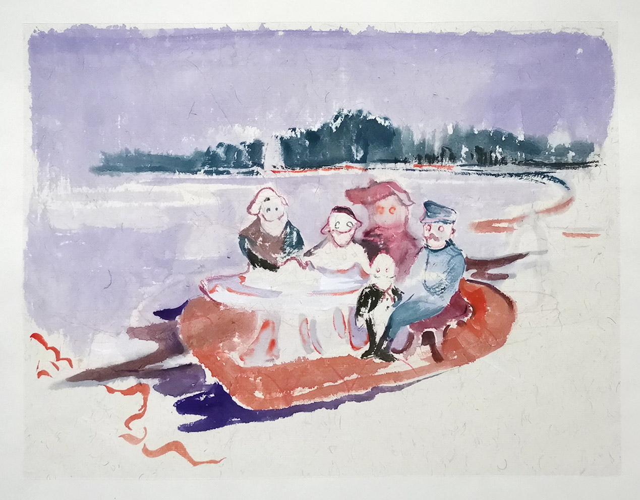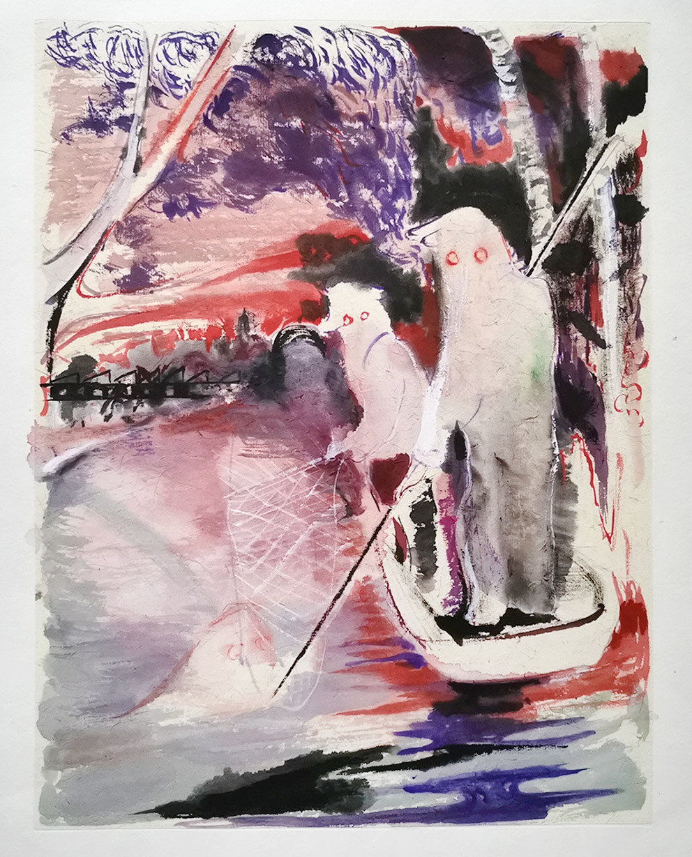 Die Edition "Nachtangeln" erschien 2019 im Rahmen der gleichnamigen Ausstellung mit Malerei und Zeichnung von Rao Fu im Salon von EIGENHEIM Berlin. Die Ausstellung war geprägt durch eine inhaltlich wie formal sehr geschlossene Serie farbiger Tuschemalerei auf Papier. Um zu verhindern das Hauptmotive der Serie in ihrer zusammengehörigen Erscheinung von einander getrennt werden, hat EIGENHEIM Weimar/Berlin in Kooperation mit d‘mage - fine art print specialists eine hochwertige Edition aus fünf Motiven dieser Serie, in einer Auflage von 12, produziert. Die vom Künstler Rao Fu ausgesuchten, signierten und nummerierten fünf Blätter sind nun in einer Editionsbox, im Originalformat, zusammengetragen worden.
