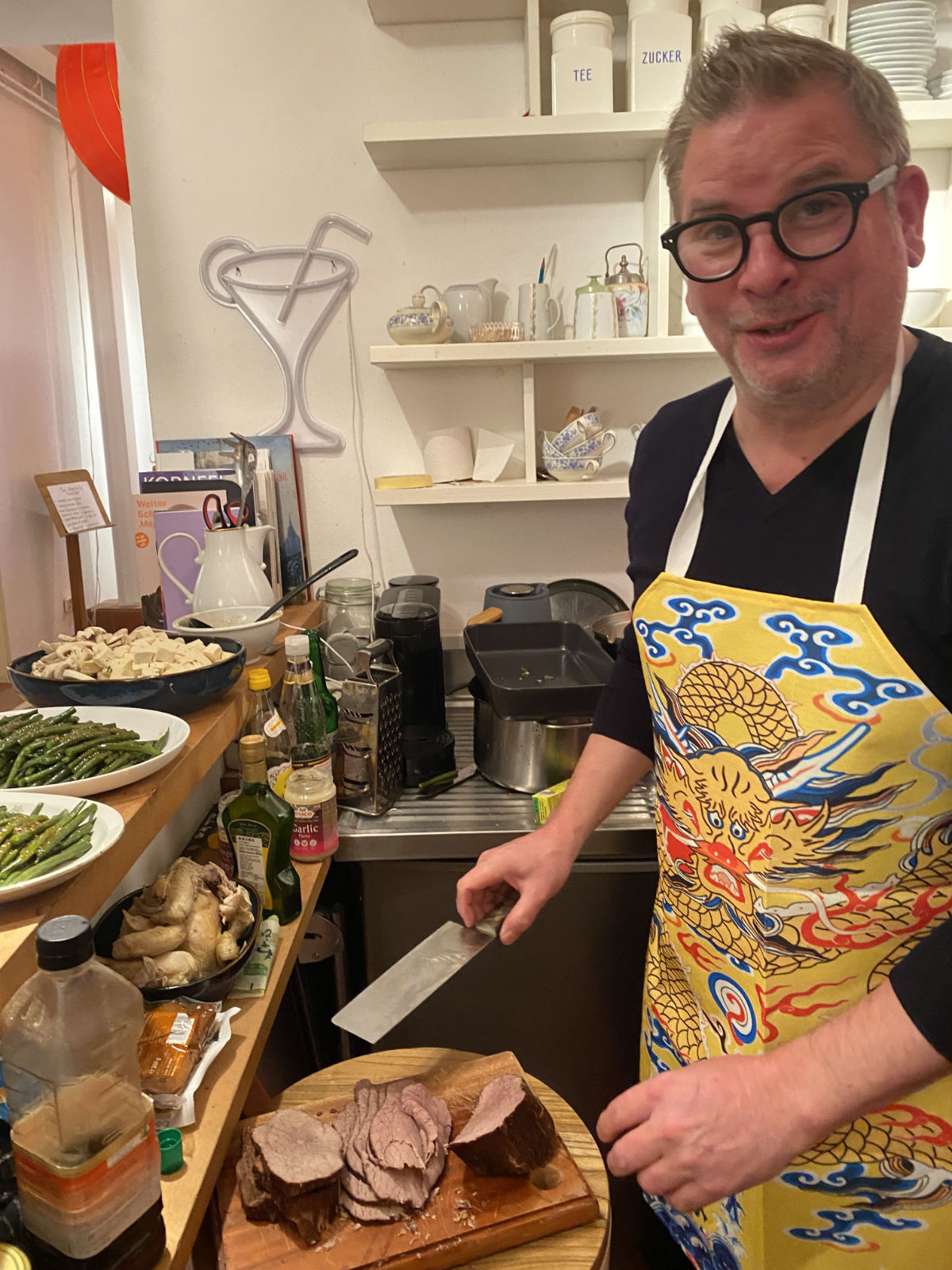 Am Eröffnungsabend wird der „Artist & Chef in Residence“ den Kochlöffel und den Wok schwingen um nicht zu letzt das Ergebnis seiner jahrelangen Suche nach dem besten Gurkensalat der Welt auf die Teller bzw. in die Schüsseln zu bringen.