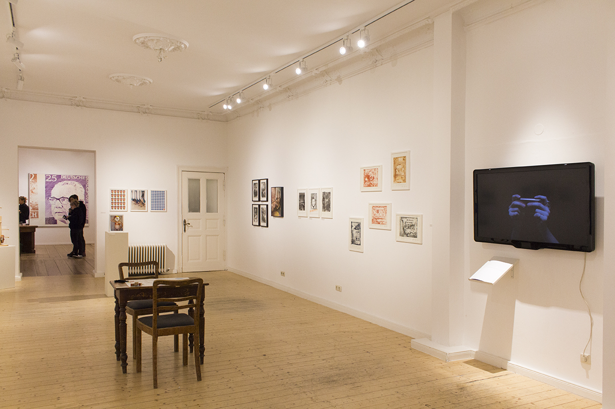 Maßgeblich für die Auseinandersetzung mit Deutschland ist die Beschäftigung mit der Geschichte der Nation. Bis heute müssen wir diskutieren ob durch das Erstarken nationalistischer Tendenzen und des Rechtspopulismus demokratische Errungenschaften gegenwärtig in Gefahr zu geraten drohen, darüber hinaus jährt sich 2019 die Verkündigung des Grundgesetztes als provisorische Verfassung der alten Bundesrepublik zum 70. Mal und auch die jüngere Deutsch-Deutsche Geschichte, der Fall der Mauer, spielt in vielen Biografien der beteiligten Künstlern eine wichtige Rolle. So ist es nicht verwunderlich das sich Künstler in dieser Mappe mit diesen historischen Kontexten auseinander setzen. So zeigt Philip Topolovac eine, durch die Hitze des brennenden Berlins während des 2. Weltkrieges, geschmolzene Glasflasche oder Das Zentrum für Politische Schönheit die Arbeit Scholl 2017, Johannes Albers Briefmarkenbögen von Gustav Heinemann, welcher der erste Minister des Inneren unter Konrad Adenauer 1949 wurde und Gabriele Stötzer ihr Portrait aus Ihrer Stasiakte.