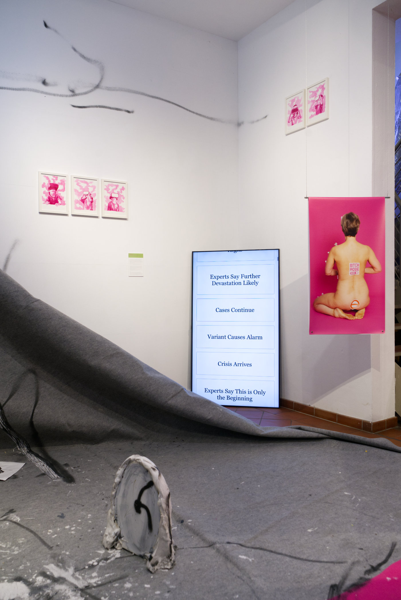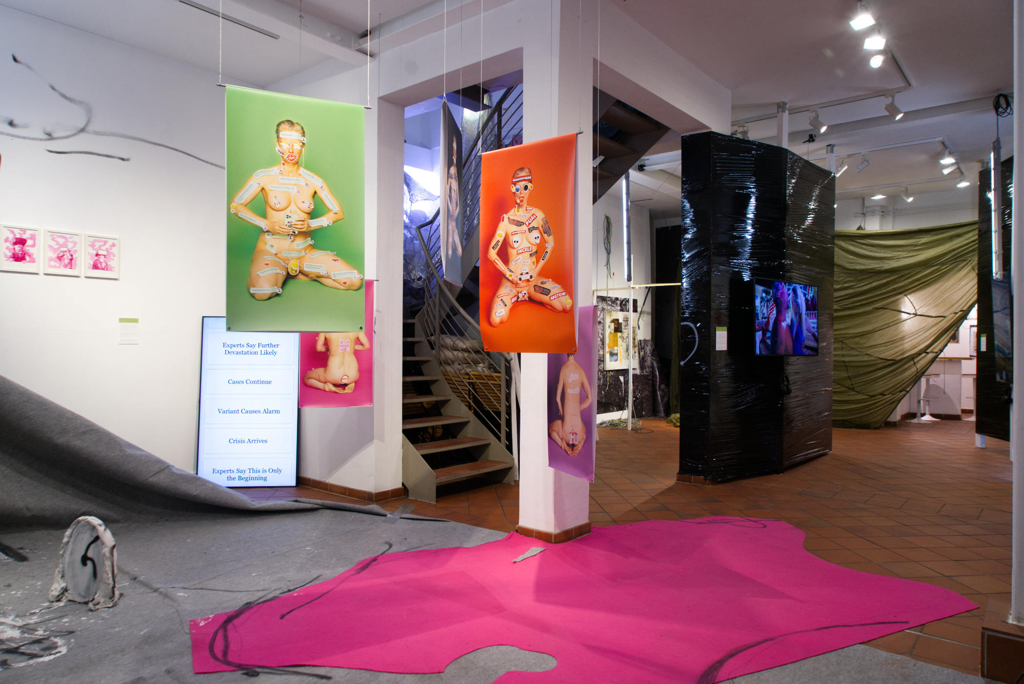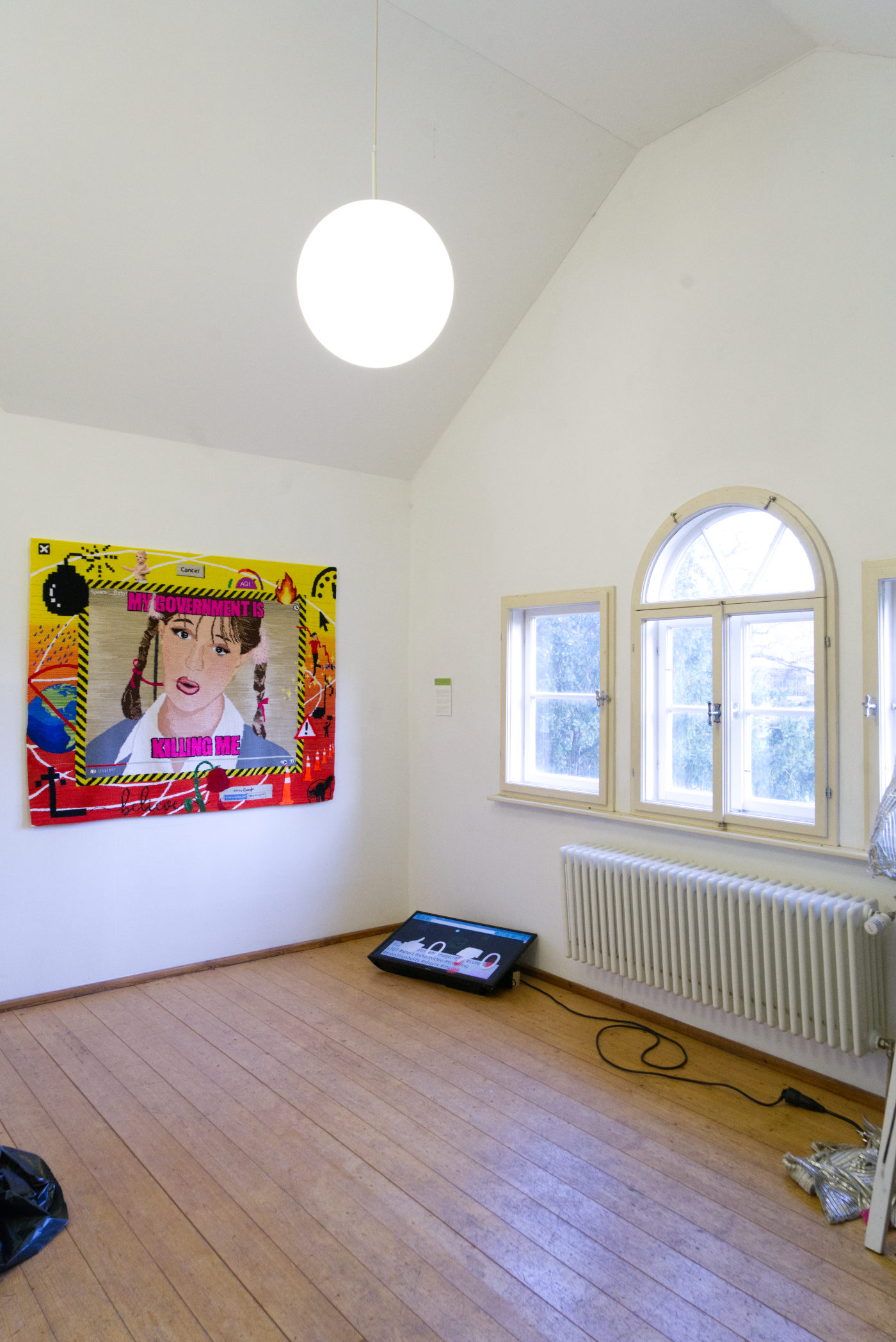 Kayla Mattes aus Los Angeles verbindet in ihrer großformatigen Webarbeit Baby One More Time Meme-Kultur, Popreferenzen und sozialkritische Kommentare zu komplexen Bildteppichen unserer digitalen Gegenwart. Signe Pierce präsentiert ihren ikonischen Kurzfilm American Reflexxx (2013), der gesellschaftlich verankerte Aggression und digitale Selbstinszenierung untersucht. Theresa Rothe aus Leipzig bringt mit Confusing Bunch