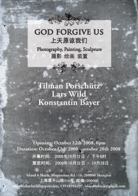 Es ist manchmal schwierig herauszufinden, wie sich Kulturen voneinander unterscheiden, auch wenn es oft so eindeutig scheint. Greifbare Faktoren, die eine Kultur zu einer Kultur machen, sind vergleichbar: Geschichte, Religion, Landschaft. Die grundlegende Komponente ist und bleibt der Mensch; Ursache und Wirkung. In der Ausstellung God Forgive Us reflektieren drei deutsche Künstler ihr Verhältnis zu Kultur und Mensch. Man möchte ihre Werke nach Inhalten einordnen, die emotionale, soziale und historische Aspekte widerspiegeln; doch es sind Tabus und die dunklen Seiten des Menschseins, die in den Gemälden von Lars Wild, den Konkretskulpturen von Konstantin Bayer und den Fotografien von Tilman Porschütz zum Tragen kommen, die einzeln näher beschrieben werden. Gemeinsam jedoch wirken ihre Kunstwerke bedächtig. Die Farbe Grau dominiert die Arbeiten der Weimarer Bauhausschüler und spiegelt die deutsche Identität wider, auch wenn sie diese auf ihre eigene Weise zu verstehen versuchen. In diesem Sinne lässt sich der Name der Ausstellung Gott vergebe uns in einem größeren Zusammenhang verstehen. Vergebung findet immer auf einer reflexiven Ebene statt - religiös wie weltlich. Wir erwarten von den Menschen, dass sie sich selbst verzeihen, wir erwarten es auch von der Geschichte, der Natur, den Generationen... Gott wirkt hier auf der Ebene des "Verzeihens" auf einer imaginären Ebene. An dieser Stelle wendet sich die Ausstellung den menschlichen Eigenschaften zu, die unabhängig von Kulturen gesucht und gefunden werden können. Sozialer Druck, Geschichtsblindheit, emotionale Unsicherheit...