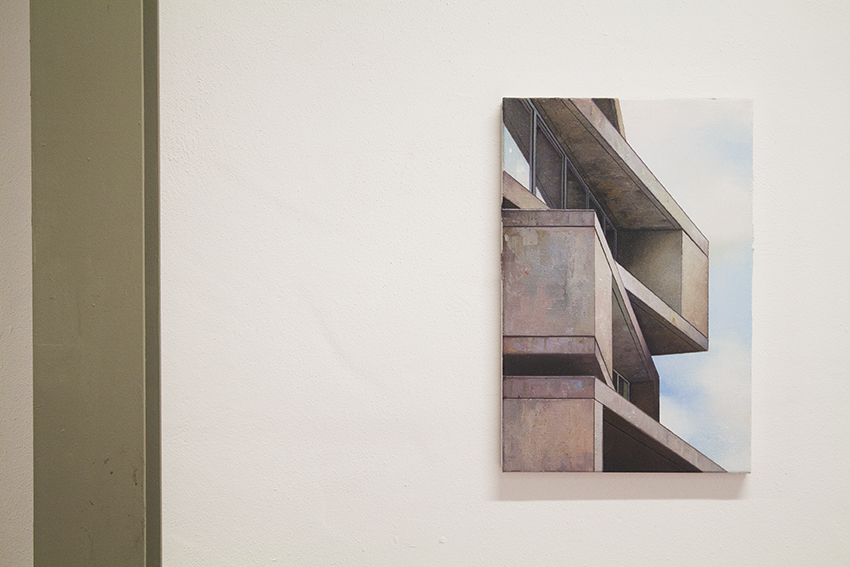 Sind die Arbeiten von Hausmann und Henn zunächst im Sujet unterschiedlich so treffen sie sich doch thematisch in der Kritik der Moderne in einem wertfreiem Sinn. Jens Hausmann stellt in seinen Landschaftsmalereien die modernistische Architektur in den Vordergrund. Wesentliches Motiv seiner Bilder sind Gebäude die zwischen dem Betrachter und einem möglichen landschaftlichen Raum stehen - die totalitäre Tendenz der Moderne ist spürbar.